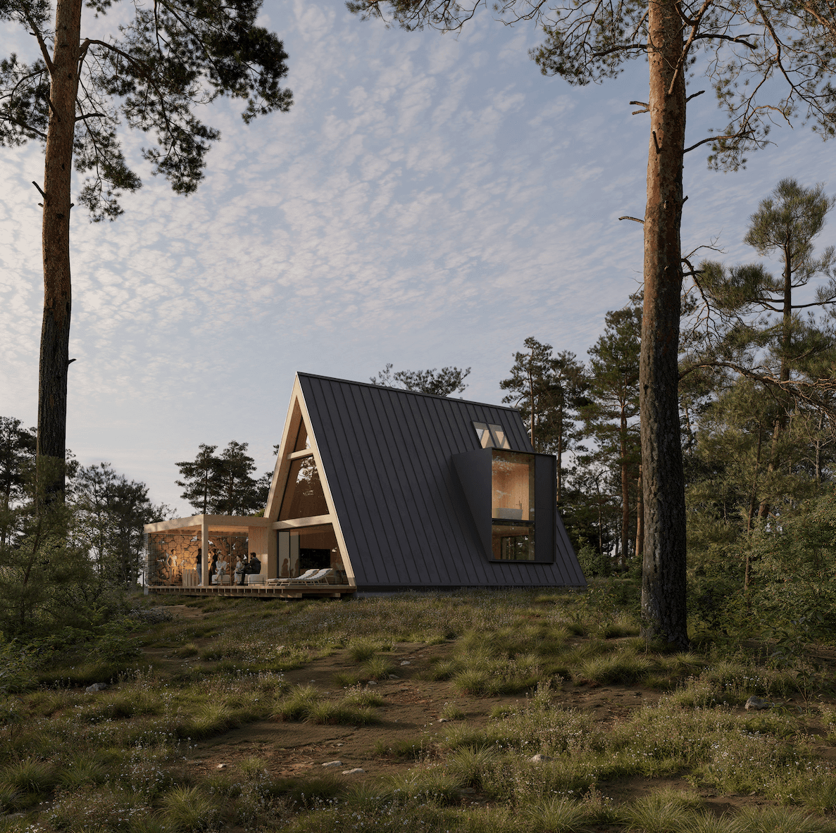 Beton, drewno, szkło w formie tradycyjnej dla okolicy
