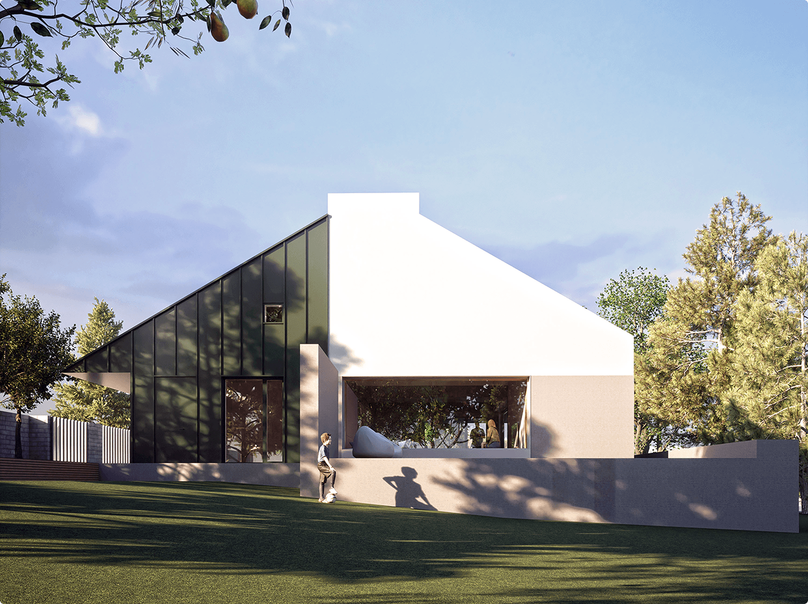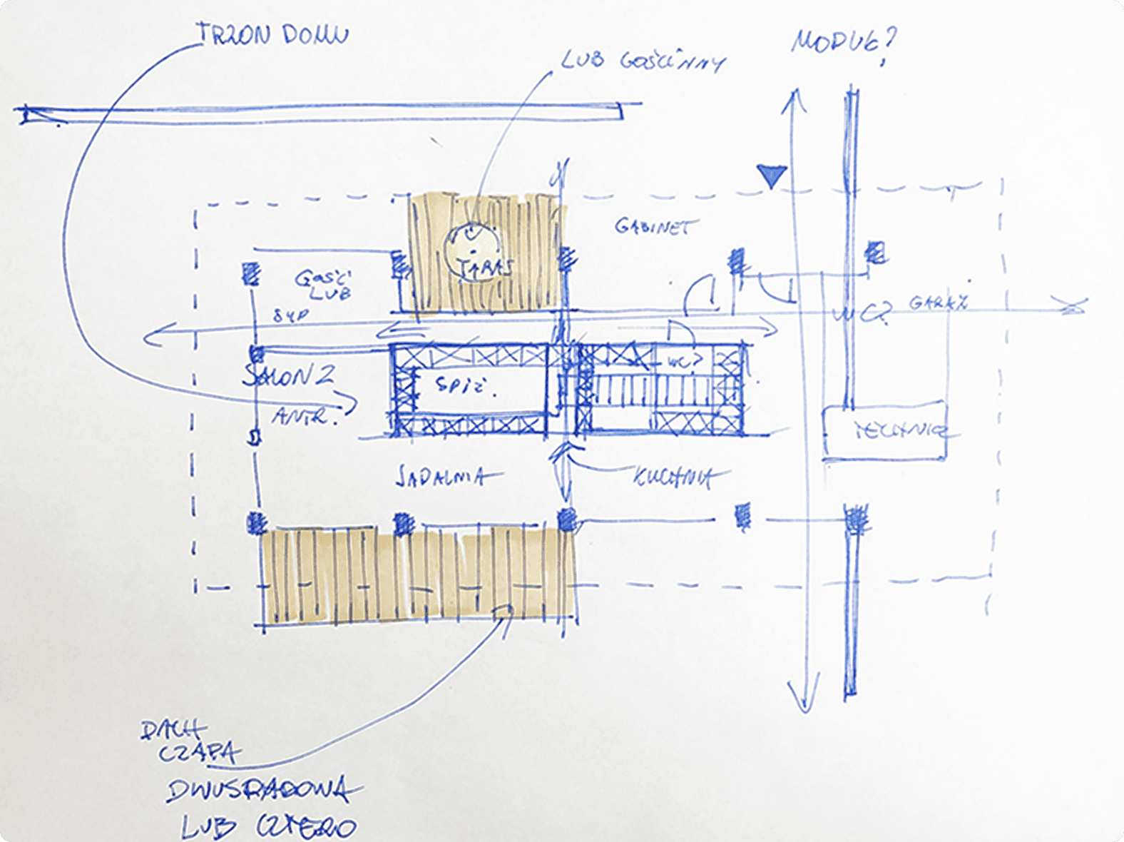 Dom łączący klasykę dachu dwuspadowego z nowoczesną bryłą.